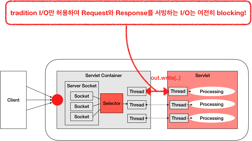 - Servlet 3.0에서 tradition I/O만 허용하였던 문제점을 개선